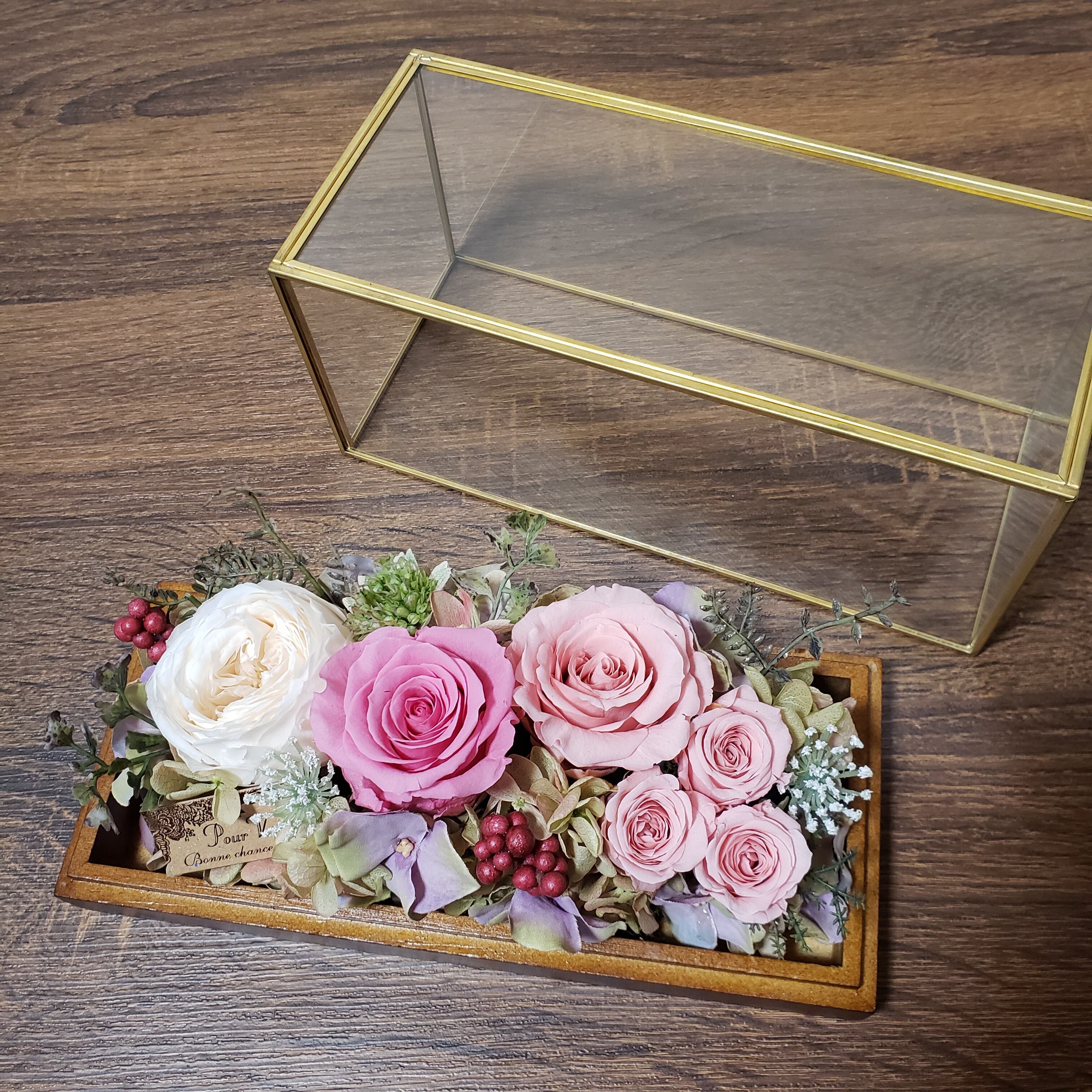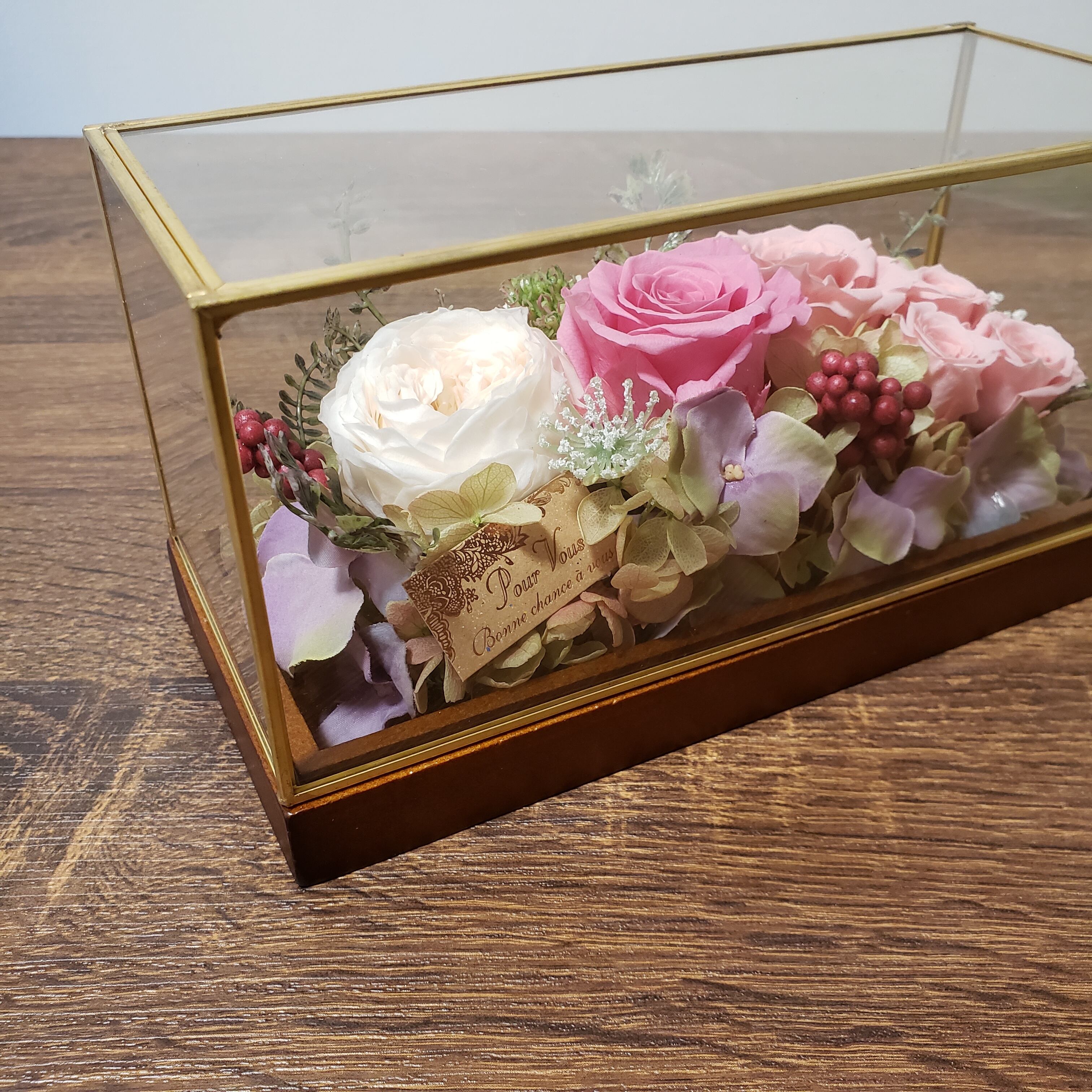 ガラスケース プリザーブドフラワー お洒落なガラスケースのアレンジメント