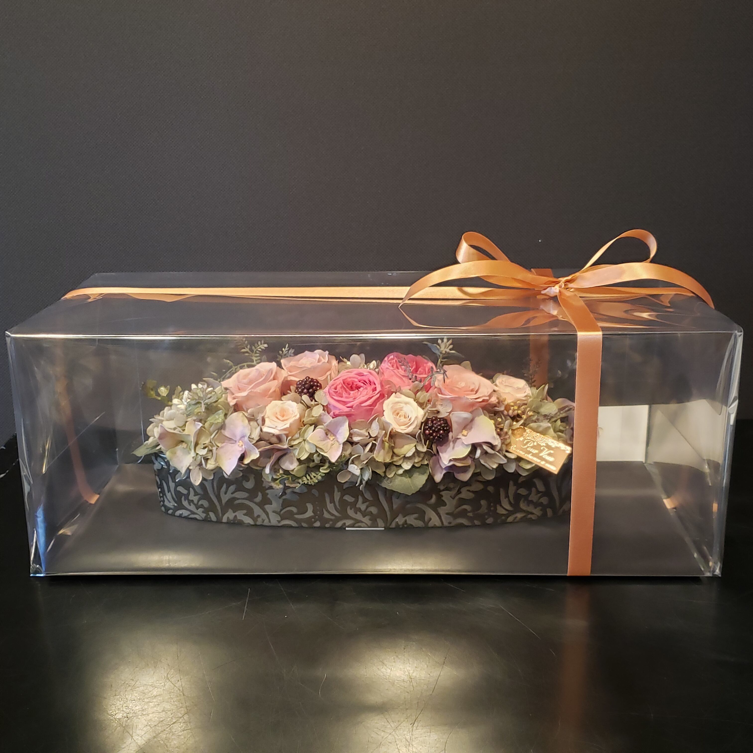 ケース付き プリザーブドフラワー ピンクローズのグラデーションアレンジメント