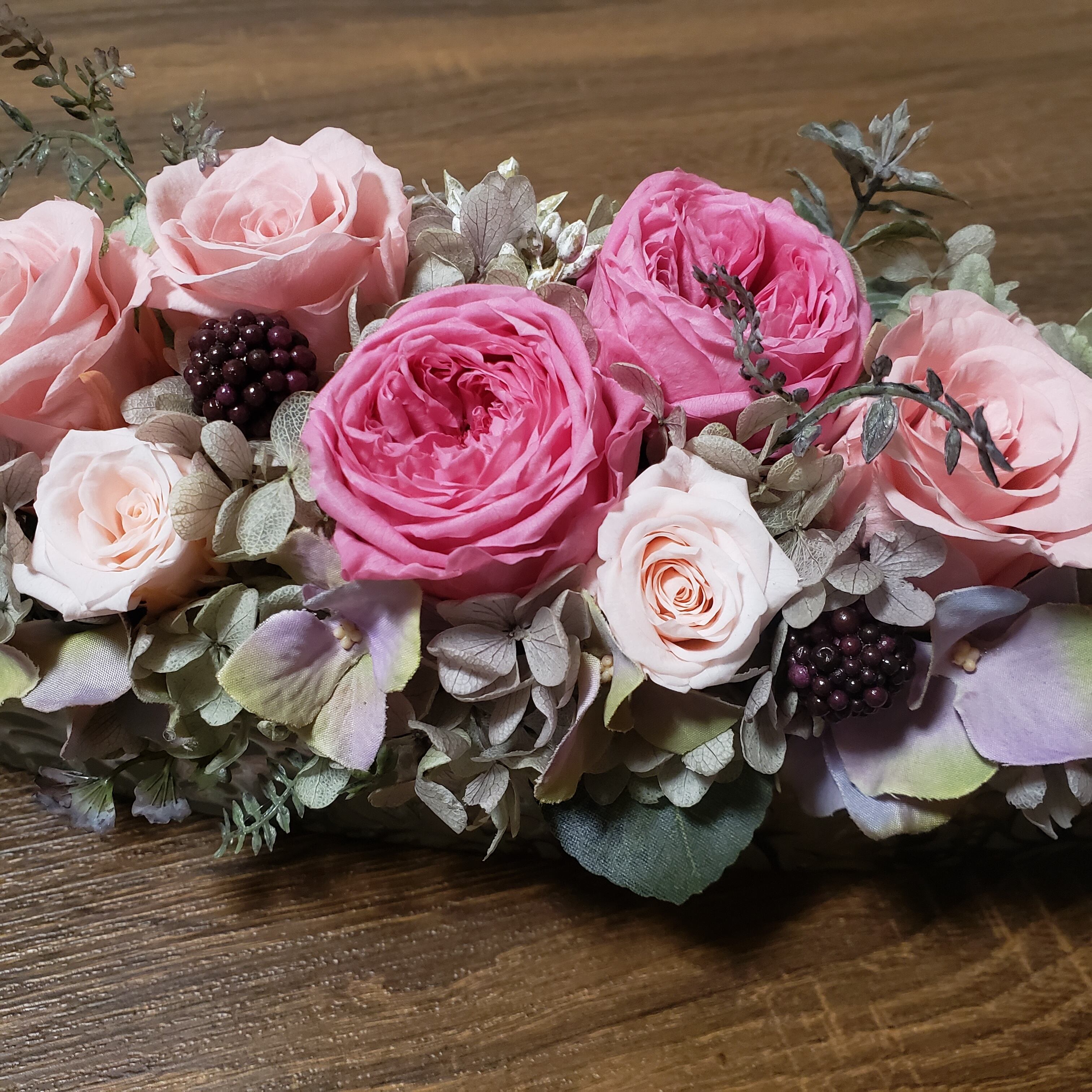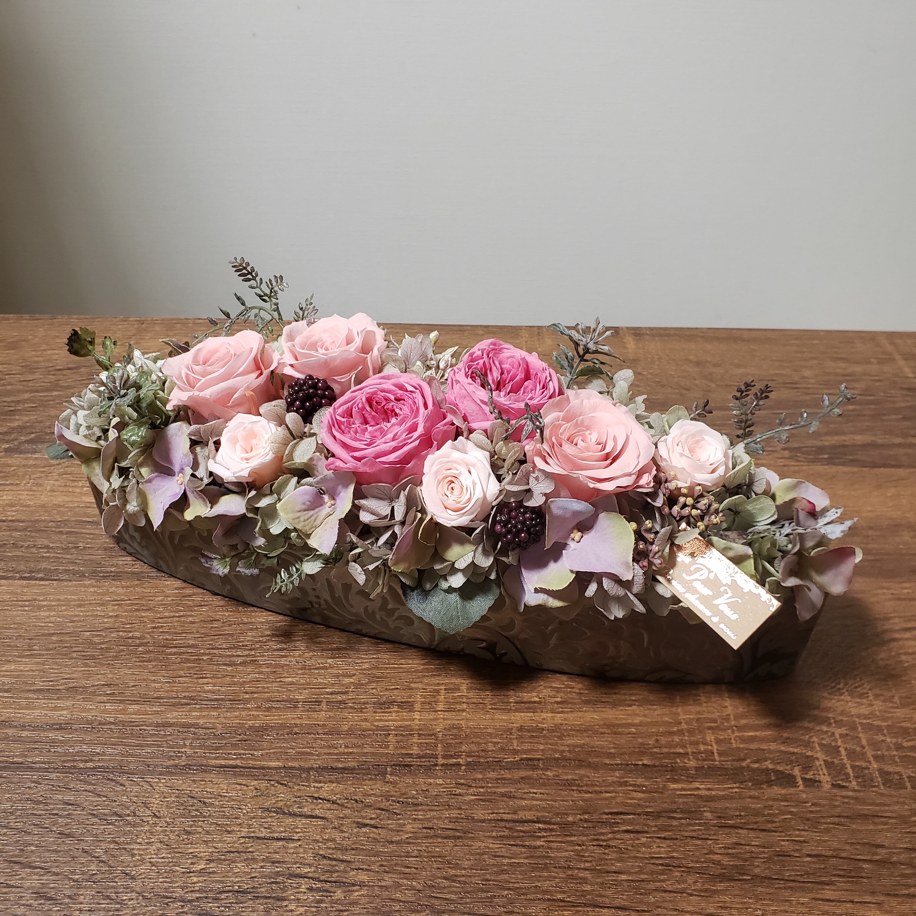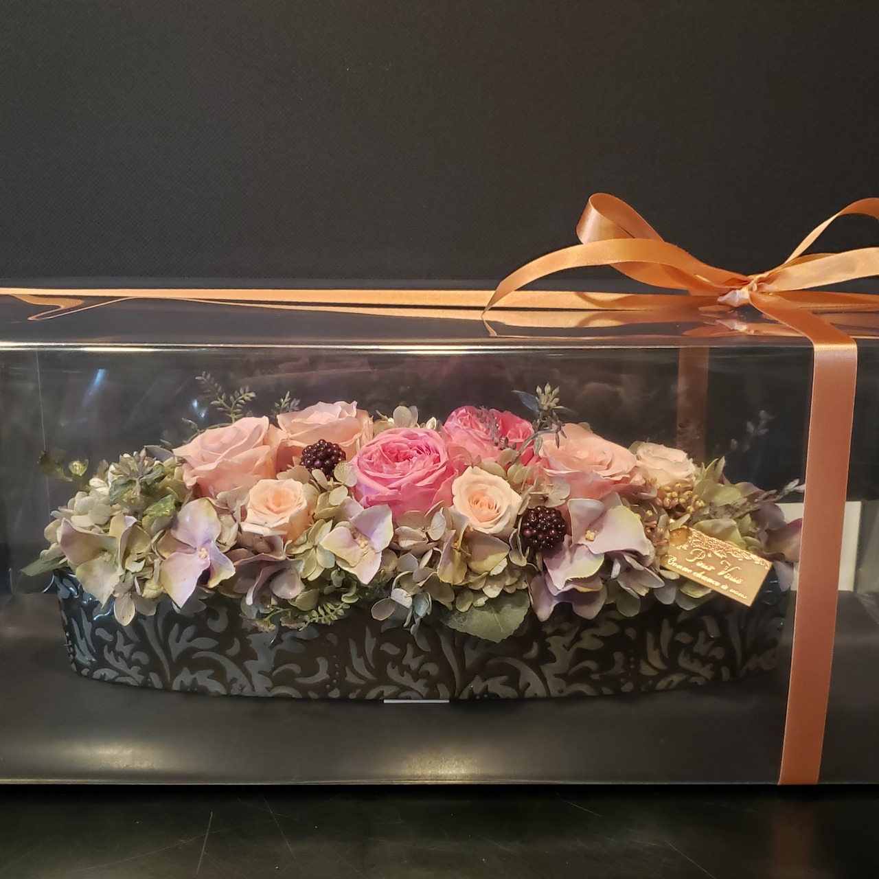 プリザーブドフラワーアレンジメントですので、様々なシーンでのご利用やインテリアとも合わせやすいです。